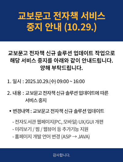 교보문고 전자책 업데이트 작업으로 서비스 중지를 안내드립니다.